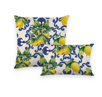 1pc Fabric Cushion Cover, Modernist Lemon & Scroll Pattern Waterproof Decorative Throw Pillow Case Without Filler For Outdoor