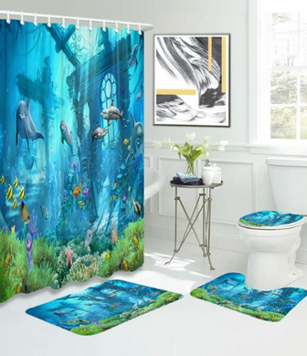 1pc Dolphin & Starfish Print Bath Rug Or 1pc Shower Curtain