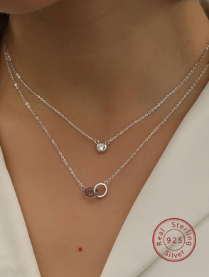 1pc Fashionable Simple Circle Link Clavicle Chain Silver Layered Necklace For Women, Ideal Gift For Date