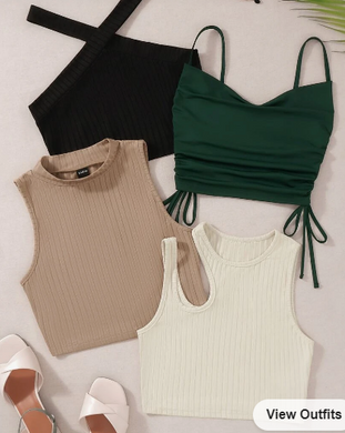 1pc Drawstring Cami Top & 2pcs Tank Top & 1pc Halter Top
