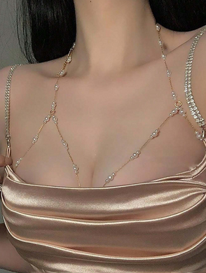 1pc Fashionable Elegant Bikini Style Faux Pearl Metallic Personalized Multi-Layer Metal Chain Chest Chain Women's Jewelry