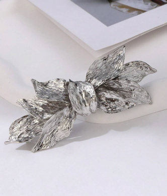 1pc Exaggerated Metal Large Leaf Hair Clip, Simple And Versatile Ponytail Holder For Women With Bow Detail Knot On The Back Head Royal