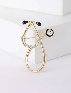 1pc Fashionable Zinc Alloy Rhinestone Stethoscope Shaped Brooch Suitable For Women's Daily Wear