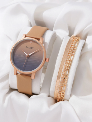 1pc Ombre Round Pointer Quartz Watch & 1pc Layered Bracelet