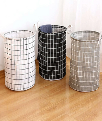 1pc Round Dirty Clothes Basket, Laundry Basket, Portable Dirty Clothes Hamper Random Color,Plaid Pattern Random Color Laundry Basket