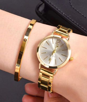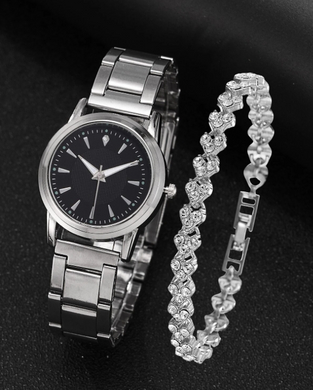 1pc Round Pointer Quartz Watch & 1pc Bracelet