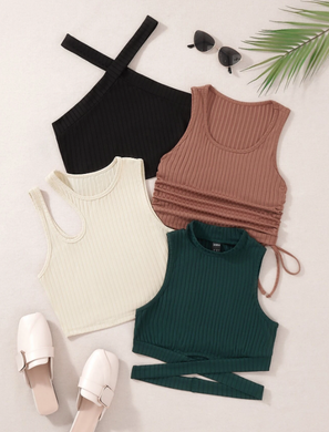 1pc Ribbed Knit Halter Top & 3pcs Tank Top