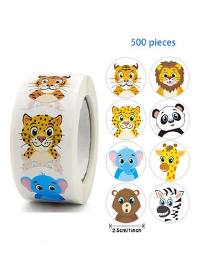 1roll Paper Gift Sticker, Cartoon Animal Pattern Decal For Party
