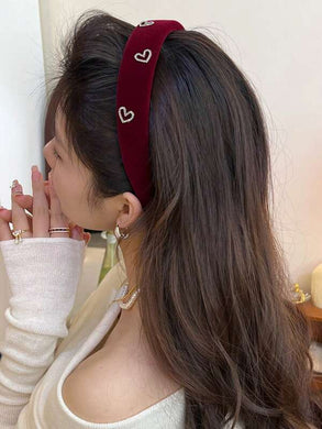 1pc Women's Red French Vintage Heart Shaped Velvet Wide-bri