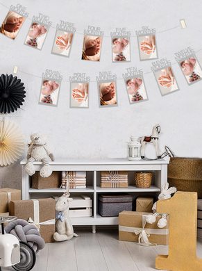 1set 12 Months Kid 1st Birthday Party Photo Banner, Silver Paper Hanging Banner For Birthday Party