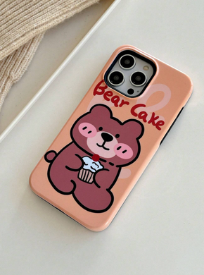 1pc اثنين في واحد حالة الهاتف سيليكون مع تصميم الدب كعكة لفون