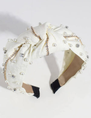 1pc Women's Faux Pearl & Rhinestone Decor Fabric Wide Headband, Suitable For Daily Wear