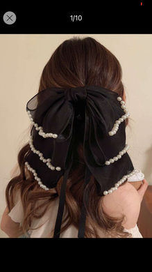 1pc Women's Pearl Strand Bowknot Hair Clip, Woodland Style Hairpin