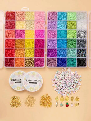 1set DIY Letter & Seed Beaded Bracelet Keychain Making Kit Includi
