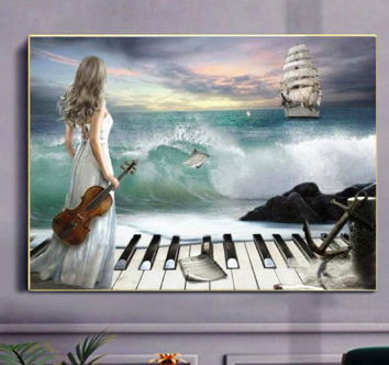 1set Figure Graphic DIY Diamond Painting Without Frame, Modern Girl & Violin Print Diamond Painting For DIY,