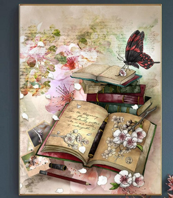 1set PMMA DIY Diamond Unframed Painting, Modern Book & Butterfly Pattern Diamond Unframed Painting For Home