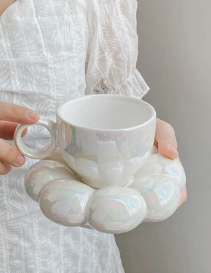 1set Solid Color 1pc Mug & Flower Design 1pc Saucer Modern Porcelain For Home, Office