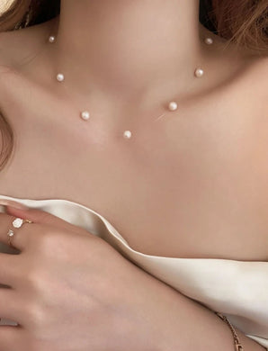 1قطعة قلادة تقليدية من اللؤلؤ البيج، خانق أنيق للنساء