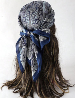 1قطعة وشاح ساتان مربع مطبوع بطراز بوهيمي أنيق بحجم 70*70سم، مناسب للحياة اليومية