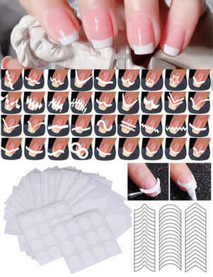 24 Sheets French Manicure Nail Stickers Strips Moon Self Adhesive Nail Tips Guides DIY Stencils Nail Art Decoration Tools