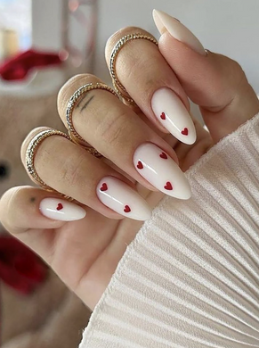 24 قطعة طقم متوسط الطول لوز شكل أحمر قلب & أبيض اظافر غطاء كامل اظافر للنساء و بنات
