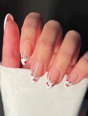 24 قطعة قصير لوز بطباعة كرز أظافر اصطناعية ورقة الشريط مع قطعة ملف الأظافر لطيفة فاكهة يضعط صباغة الاظافر جل الأظافر عدة