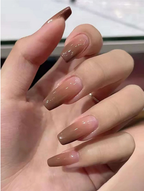 24 قطعة طويل نعش شكل بني منحدر صعب الأظافر الزائفة طقم مع قطعة واحدة هلام صمغ ملف الأظافر 1قطعة , يرقي لك أسلوب