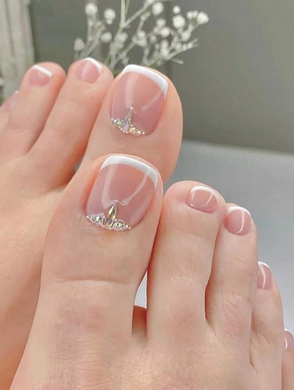 24 قطعة فرنسي قصير مربع بديكور حجر الراين أظافر قدم صناعية ورقة الشريط مع قطعة ملف الأظافر يضعط أظافر القدم