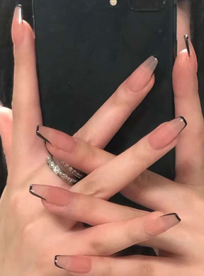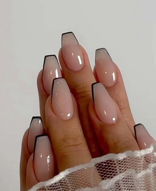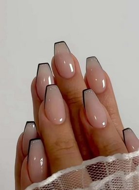 24 قطعة قصير نعش شكل الأظافر الزائفة طقم , لون بشرة لون مع أسود حافة موديل فرنسي تصميم الى مسمار