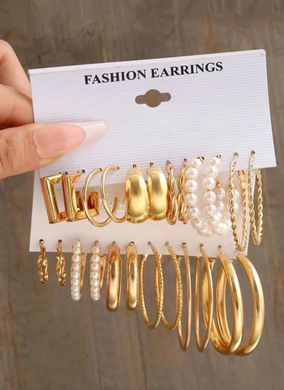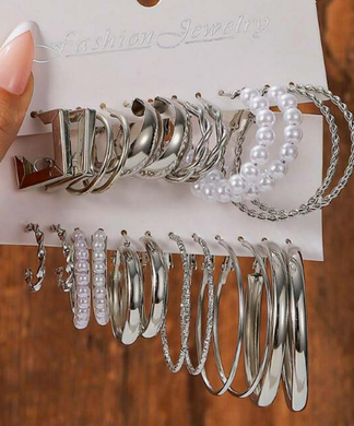 24 زوج أقراط مجوهرات التقليد من اللؤلؤ والأشكال الهندسية والملتوية للح