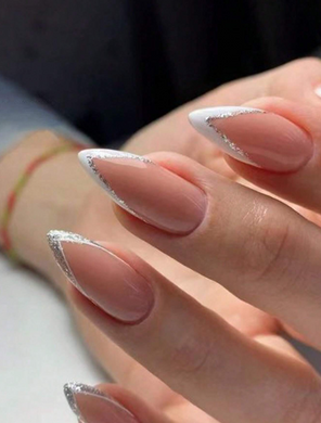 24 قطعة أظافر صناعية بشكل لوزي جميلة + ملف أظافر 1 قطعة + هلام الأظافر 1 قطعة