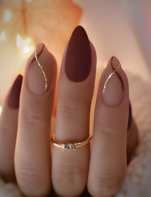 24 قطعة أظافر مزيفة بشكل لوزي غير لامعة مع شريط ذهبي وأحمر، في أسلوب أنيق، أظافر مزيفة للنساء والفتيات