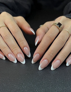 24 قطعة أظافر مزيفة قصيرة بشكل اللوز على الطراز الفرنسي الكلاسيكي، أظافر مزيفة قصيرة بشكل دائري بسيطة، مناسبة للنساء