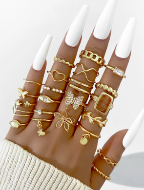 23pcs Rhinestone Butterfly & Heart Decor Ring