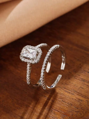 • 2pcs Cubic Zirconia Decor Cuff Ring Copper Jewelry