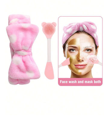 • 2pcs Face Cleansing Set, 1pc Double-Ended Multifunction Cartoon Bear Design Facial Cleansing Brush & 1pc Coral Fleece Soft Bow Decor Hair Band, For Blackhead Cutin Removal, Skin Care, Dig And Apply Mud Film, Face Wash And Face Care