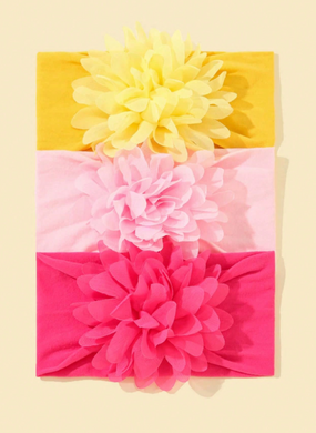 3 قطع/مجموعة من عصابات الرأس المصنوعة من النايلون للأطفال بلون موحد مع زينة زهور مرنة، مناسبة للرضع والأطفال الصغار