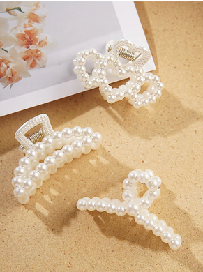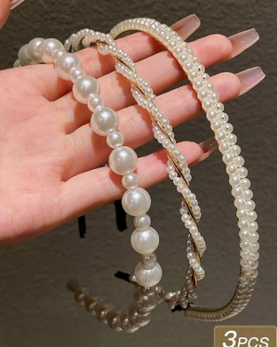 3 قطع مشبك شعر مزين باللؤلؤ الصناعي للشعر الجانبي للنساء