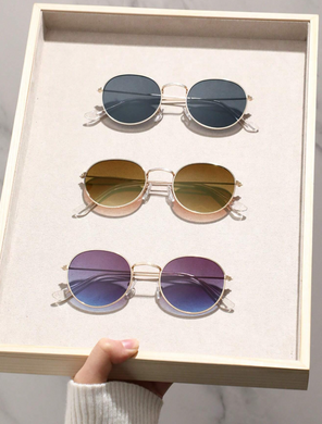 3 قطع من النظارات الشمسية البيضاوي بوهو النحاسي الرمادي والأزرق للنساء في الهواء الطلق والسفر اليومي للحماية من الأشعة فوق البنفسجية