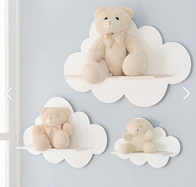 3'lü Beyaz Dekoratif Bulut Çocuk Odası Duvar Rafı