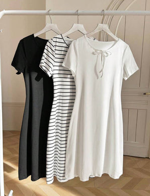 3 قطع مجموعة من الفستان المخطط باللونين الأسود والأبيض والفستان الأسود'
