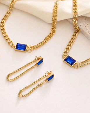 3 قطع من طقم القلادة والسوار والأقراط الأنيق المزين بالراين'