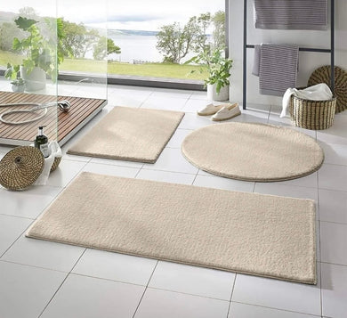 3'lü Banyo Paspasi Halisi Pelus Hali Klozet Takimi Bej 50x90-50x60--50x50(YUVARLAK)