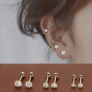 3أزواج من مسامير الأذن بتصميم اللولب الكلاسيكي باللون الذهبي، أقراط كوبيك زركونيا دائرية للنساء ، لبس يومي للجنسين