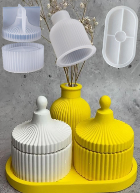 4 قطع / مجموعة قوالب سيليكون مع تصميم صينية لبرطمان مغطى ، مزهرية وصينية