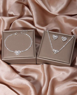 4 حبات مجموعة مجوهرات قلب مجرب بالكامل ومرصع باللامع، مناسبة للمرأة في عيد الميلاد وحفلات الزفاف واليوم الوطني