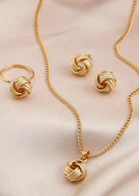 4 قطع من مجموعة مجوهرات النساء لإطلالة يومية بتصميم عقدة حبل ملتوي بسيط وعصري و يتضمن أقراط و عقد و خاتم