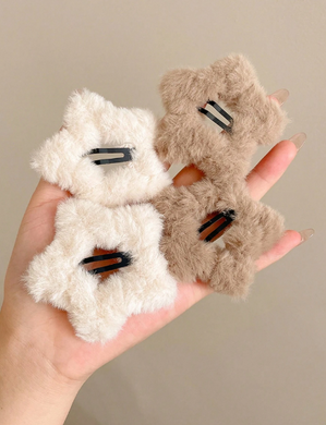 4 مشابك شعر على شكل نجمة محببة، مشابك الشعر البنية الداكنة لون القهوة، ملحقات شعر لطيفة و فريدة من نوعها من الصوف الشتوي