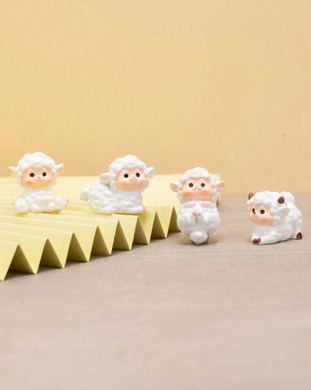 4pcs/set Polyresin Decoration Object, Cartoon Sheep Design Decoration Craft For Home