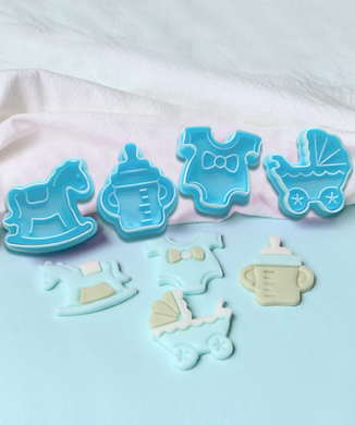 4pcs/set PP Cookie Mold, Creative Milk Bottle & Stroller Shaped Cookie Mold For Kitchen